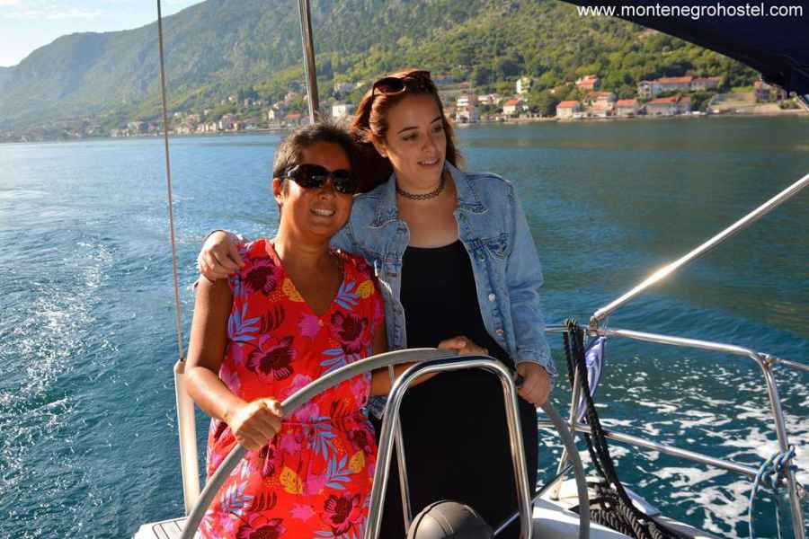 Montenegro Hostel Travel Agency organizes sailing boat tours in Boka Bay, from the 1st of April to the 1st of November. The tour is not exclusively only for our guests. Anyone can book it, and it is organized every day if the minimum group of 5 guests for BAVARIA 36, or a minimum group of 7 guests for BAVARIA 46, is reached. Private tours can depart any day. Look at the overview, highlights, itinerary, video presentation, photo gallery, terms, and conditions of the tour. If you like to take a seat on it you can easily make an online reservation, using the button BOOK NOW!