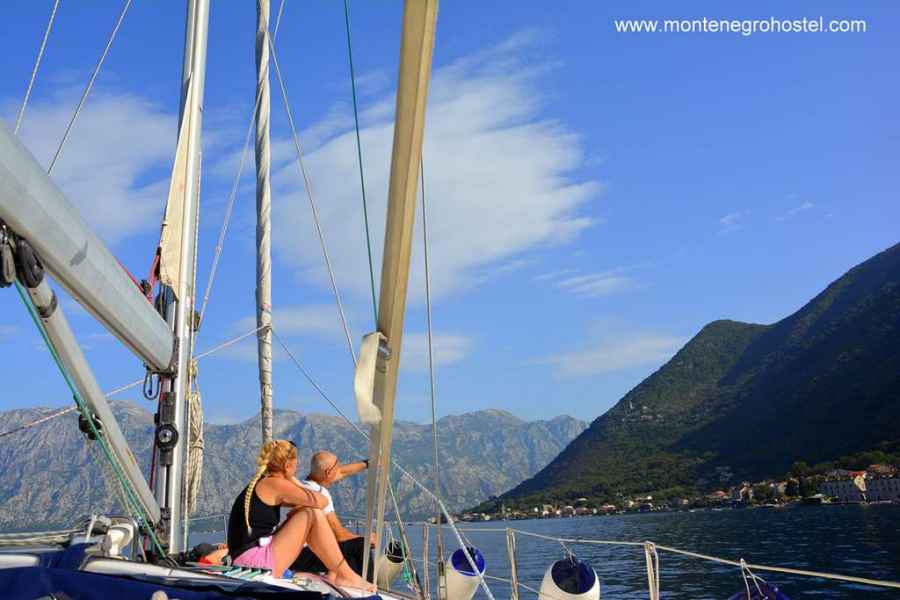 Montenegro Hostel Travel Agency organizes sailing boat tours in Boka Bay, from the 1st of April to the 1st of November. The tour is not exclusively only for our guests. Anyone can book it, and it is organized every day if the minimum group of 5 guests for BAVARIA 36, or a minimum group of 7 guests for BAVARIA 46, is reached. Private tours can depart any day.  Look at the overview, highlights, itinerary, video presentation, photo gallery, terms, and conditions of the tour. If you like to take a seat on it you can easily make an online reservation, using the button BOOK NOW!