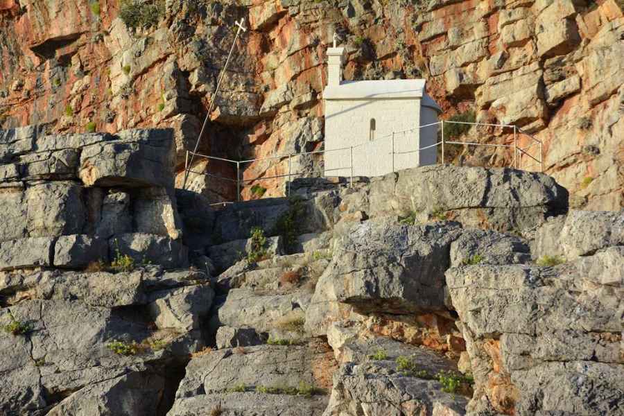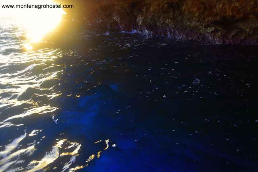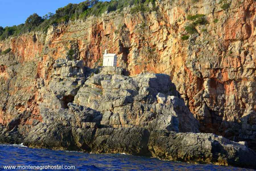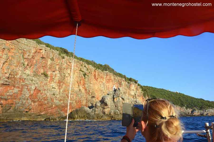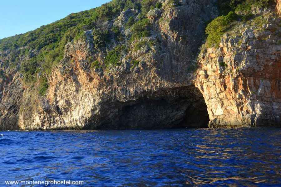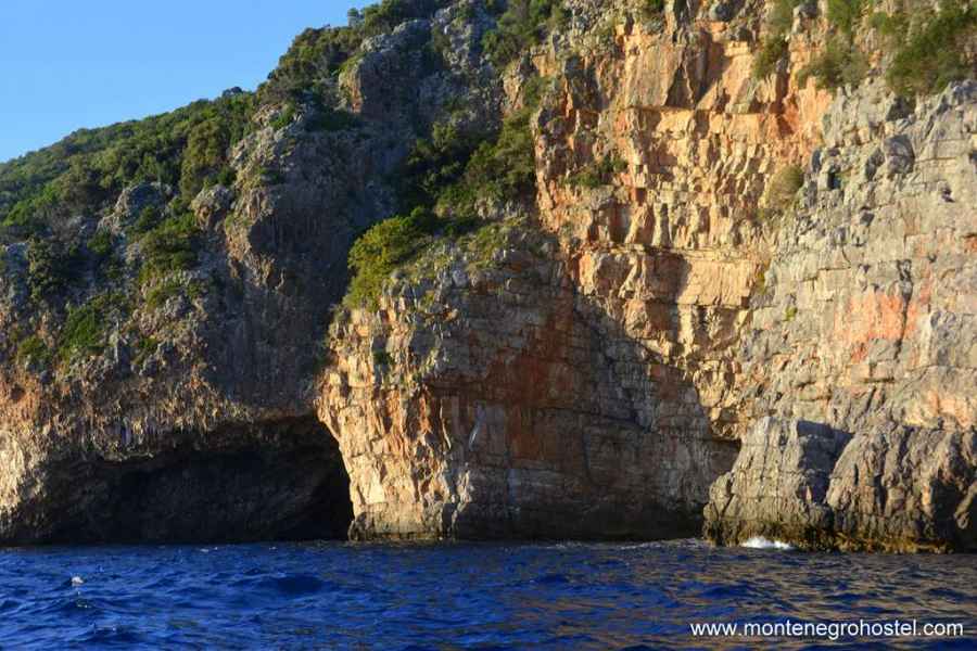 According to tradition, the church was built by an unknown Greek, after he escaped from a storm at sea and found salvation on those cliffs. The original church crashed in the earthquake in 1979. The new church was rebuilt in 2003. In less than 10 minutes of the boat ride, we will be close to our final destination, the cave "Velika Krekavica". It is difficult to pronounce, so we can call it The Small Blue Cave because part of the cave has cobalt blue water.