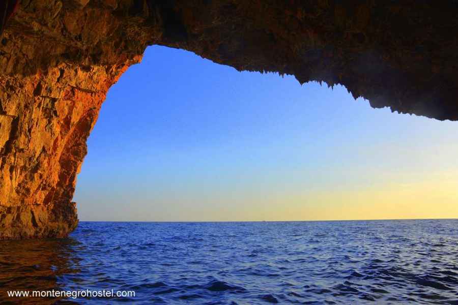 The cave is 35 meters deep, with colorful walls, and is popular for underwater photography enthusiasts. Here we will take a break to swim and wait for the sunset. The photos you will take will be fantastic because there will be nothing in front of you while the sun dips into the sea. This part of the coast between Budva and Kotor is the least visited by tourists and is rarely crowded even in the peak season.