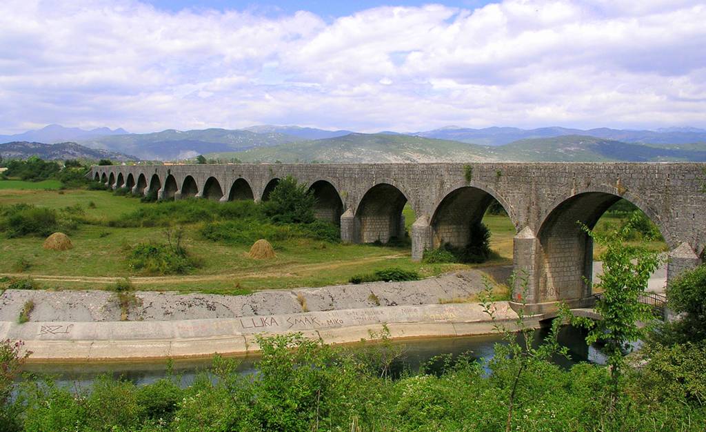 The surroundings of Nikšić are unusually rich in old stone bridges. Several streams and rivers that flow through its fields are bridged by approximately a dozen of them. Taking almost any road from Nikšić, you are bound to cross some of them. The largest amongst them is Carev most (“ Tsar’s Bridge”). It lies on the old Nikšić-Podgorica road streaming to the river Zeta, which is now reduced to a canal but was once a much mightier river, judging from the length of 269 m and 16 arches of its imposing structure. It was built in 1894 again from the donation of the Russian Emperor; therefore, its name, although its imposing size could give inspiration to this name as well. To reach it, start in the direction of Podgorica and then follow the road going straight to Kličevo. The oldest and most interesting among old stone bridges is the so-called Roman Bridge over the Moštanica River, whose unusual openings testify to its antiquity. It is assumed that it was built in the 8th century AD on the road from Dubrovnik to Nikšić.