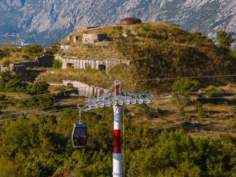 The last part of the tour is the most attractive. We will start from Kotor at 15:30, and after a 10-minute drive, we will be at the locality Dub where there is a cable car entrance. The route leads to the locality of Kuk on the plateau of the Lovćen mountain, at 1,348 meters above sea level. The height difference between the starting and ending stations will be 1316 meters. The cable car is about 4 km long with a capacity of 1,000 passengers per hour and is served by 48 gondolas. Travel time from Dub station to Kuk station is 11 minutes.